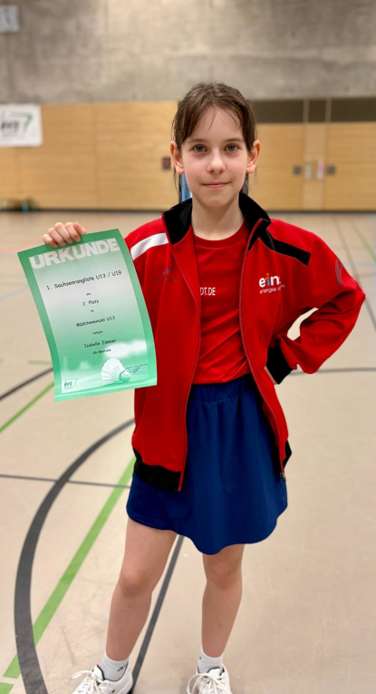 Sehr erfolgreich startete Isabelle Zimmer von der SG Meerane 02 in die diesjährige Badminton-Ranglistensaison auf Landesebene. Beim ersten Turnier in der Altersklasse U13 (unter 13 Jahre) in Dresden wurde sie Zweite und errang damit ihren ersten Podestplatz auf Landesebene. Mit Erfolgen über Nora Uhlig (BV Marienberg) und Lina Fritzsching (BV Zwenkau) schaffte sie den Einzug ins Finale. Hier hatte sie dann gegen Fiza Islam (SV Berliner Brauereien) das Nachsehen.